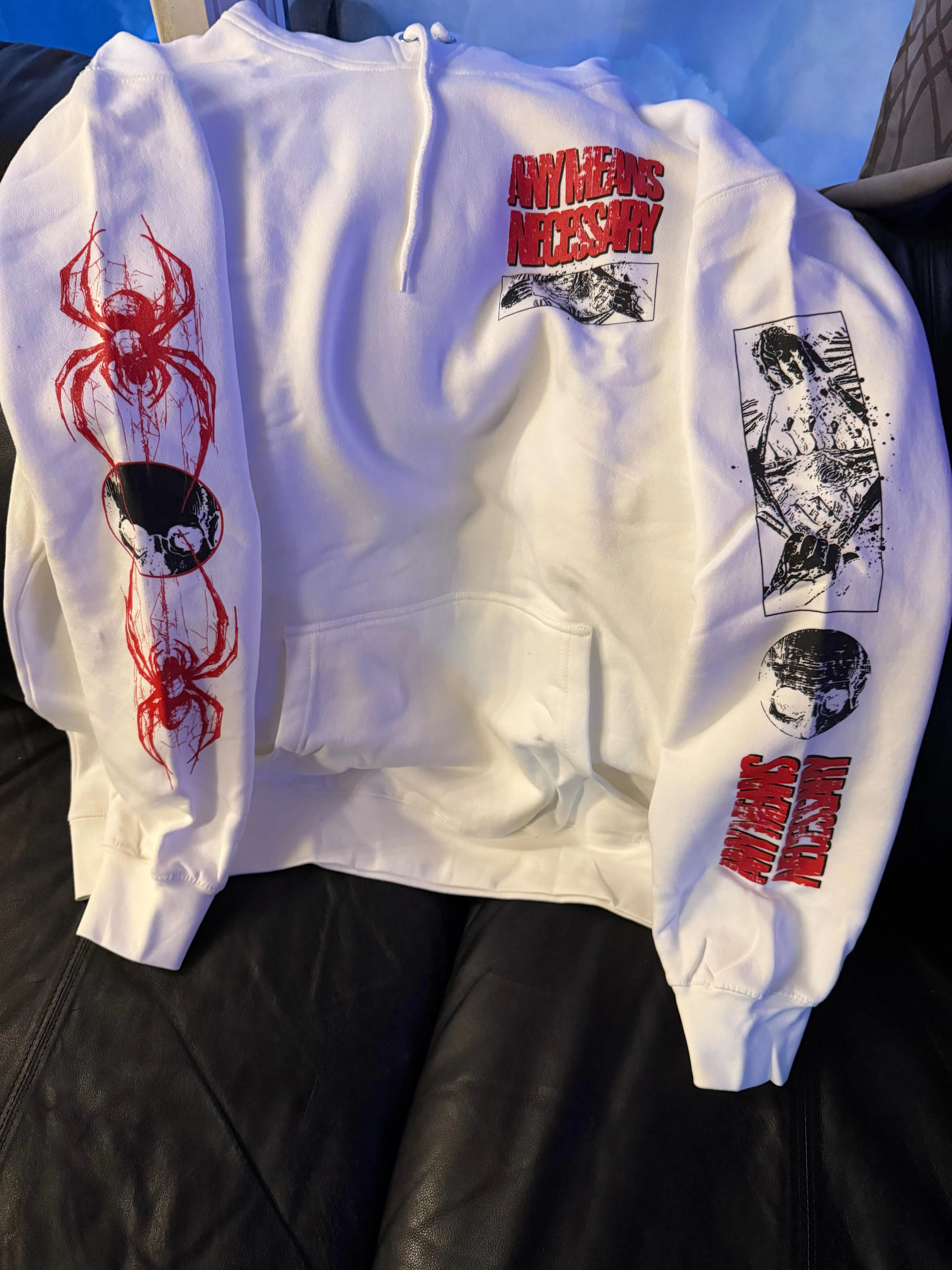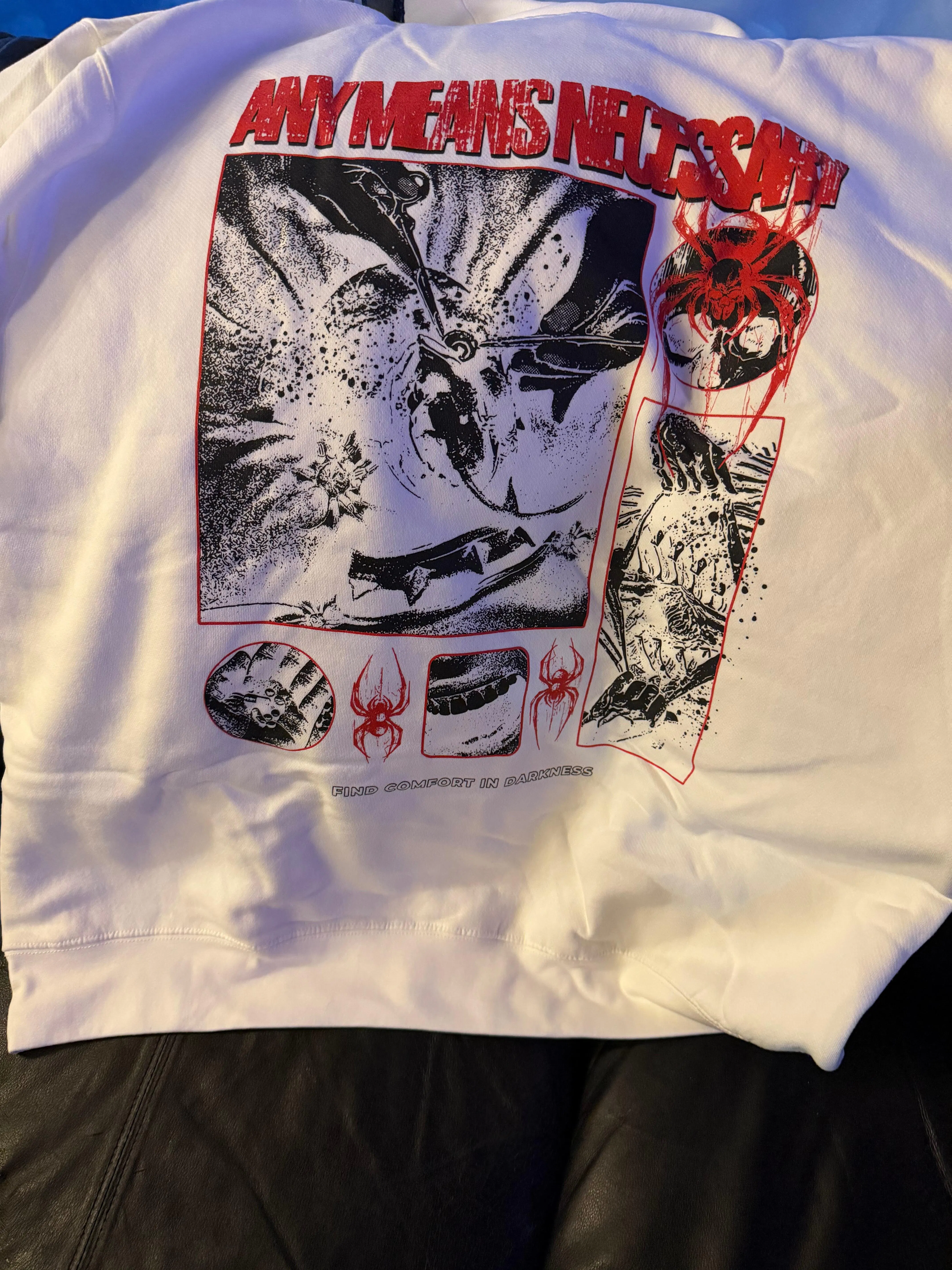 We started from nothing — literally. From sleeping on the streets to clawing our way to the top, Any Means Necessary is about survival and staying true. We’re not just here to sell clothes; we connect with every misfit, fighter, and soul who’s been through the grind. The Hyena embodies our unmatched, unrelenting spirit—there are more of us than there are of you.