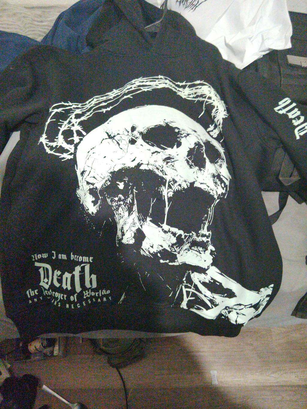 Nothing says Destroy everything than an Oppenheimer quote and a oversized skull print. One of our biggest hits of 2024, we struggle to keep in stock