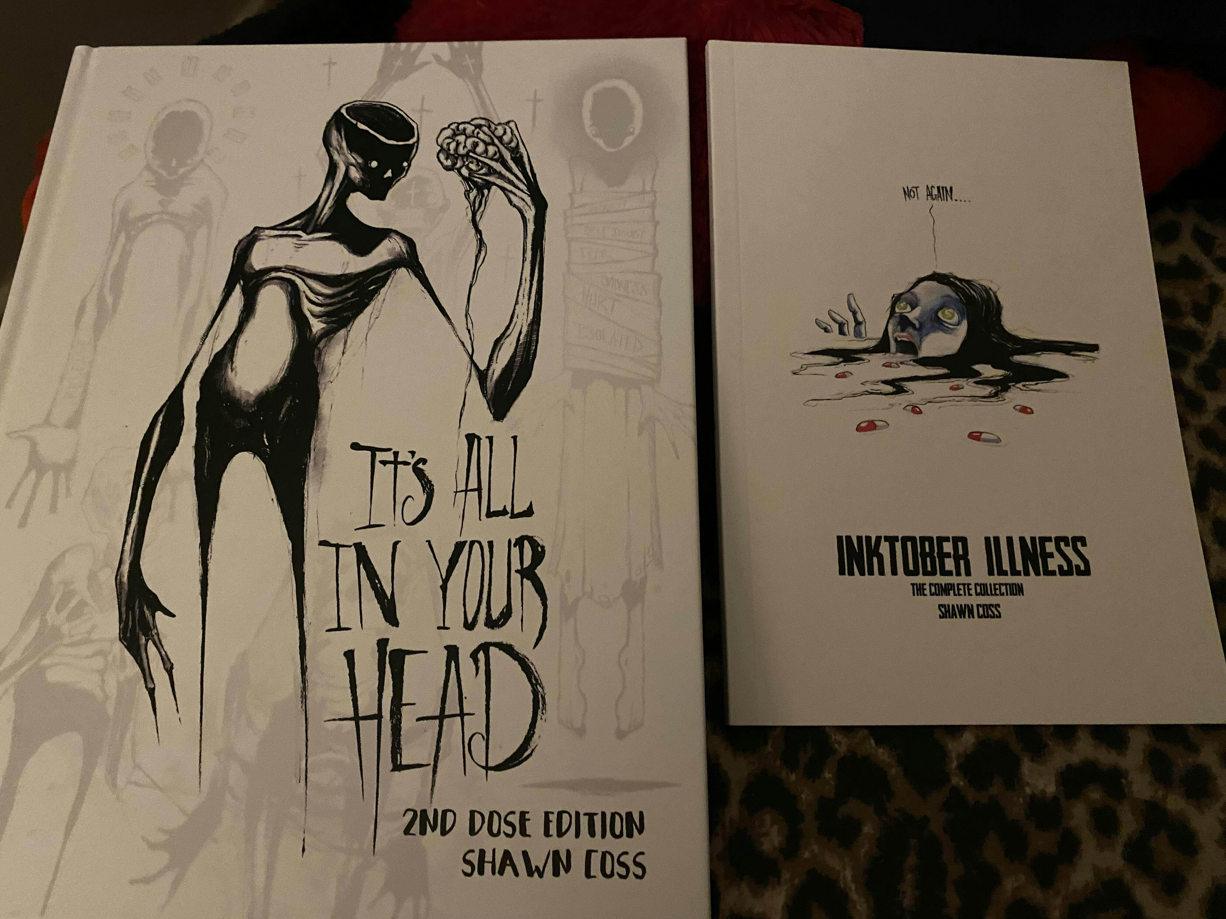 It's All In Your Head by Shawn Coss is a compelling 270-page art book that delves into the visceral realities of mental illness through stark, surreal illustrations. Drawing from his experience as an ER nurse, Coss brings to life disorders such as anxiety, PTSD, and schizophrenia, offering a raw visual narrative that resonates with those who have faced these challenges. The book features pieces from his acclaimed "Inktober Illness" and "Feartober" series, providing an unflinching look into the struggles many endure silently.