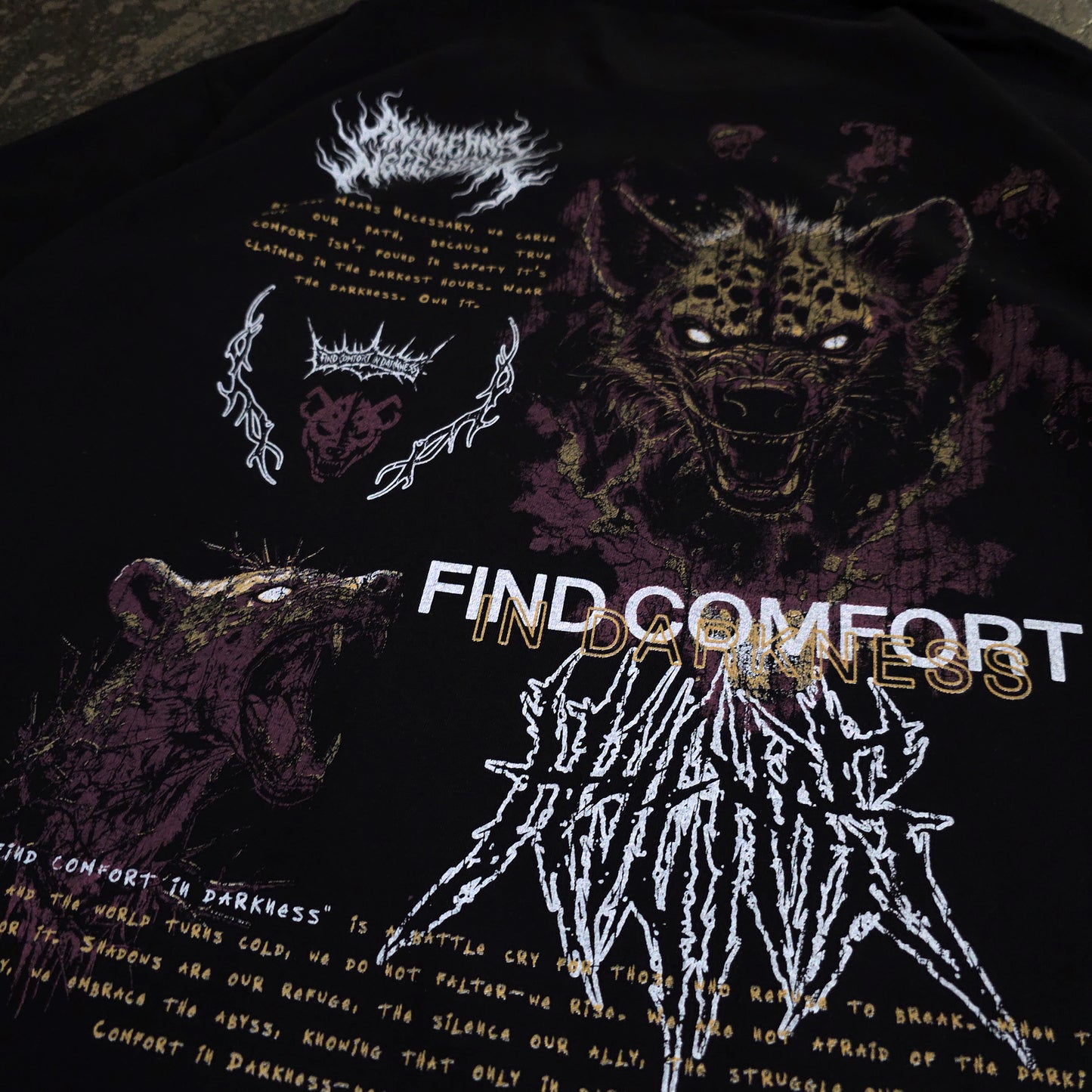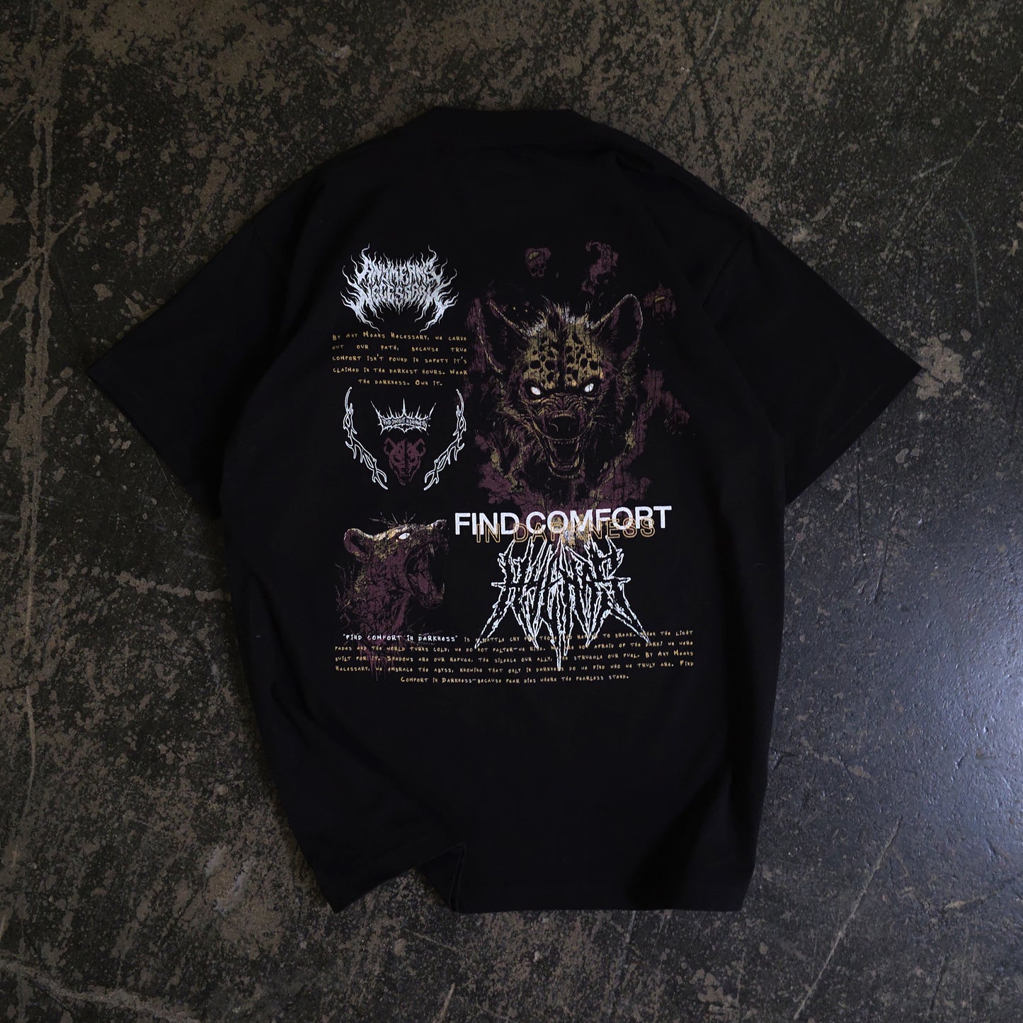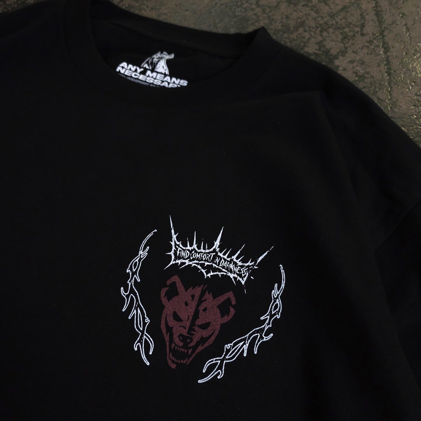 We started from nothing — literally. From sleeping on the streets to clawing our way to the top, Any Means Necessary is about survival and staying true. We’re not just here to sell clothes; we connect with every misfit, fighter, and soul who’s been through the grind. The Hyena embodies our unmatched, unrelenting spirit—there are more of us than there are of you.
